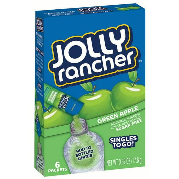 6 Packets Jolly Rancher Green Apple Sugar Free On The Go Caffeine Free Powdered Drink Mix Walmart Com