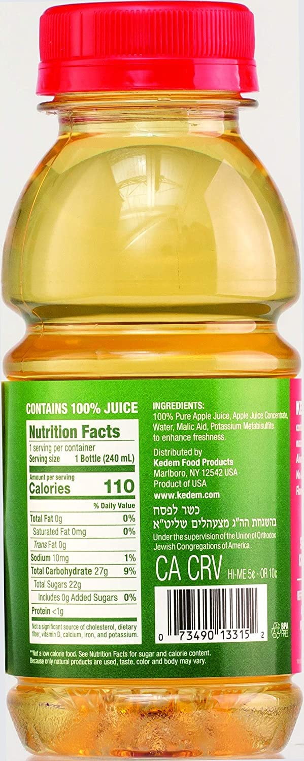 Kedem Apple Juice 8oz Bottle 1 Pack 100 Juice No Sugar Added Walmart Com